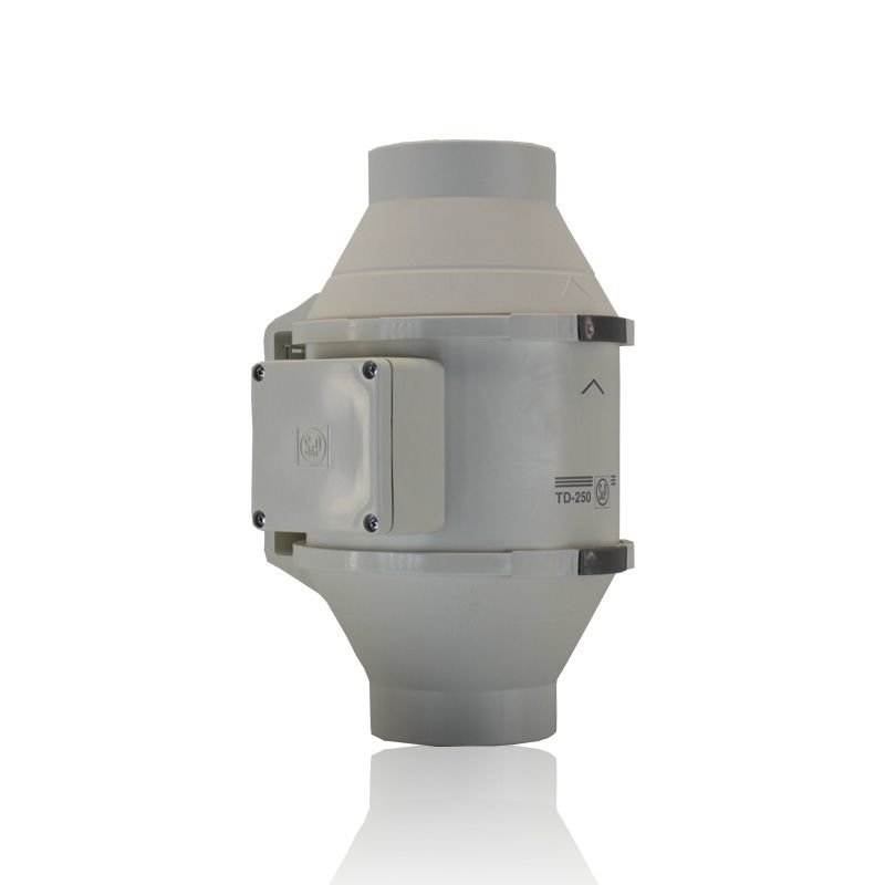 Вентиляторы серии TD разработаны специально для работы с каналами большой протяженности и в условиях повышенных требований к уровню шума в помещении. Имеют достоинства центробежных вентиляторов (большое давление на выходе) и преимущества осевых вентиляторов (большой расход воздуха, малые уровень шума и габаритные размеры). Вентиляторы серии TD предназначены для монтажа в вентиляционных каналах. Вместе с вентилятором поставляются крепежные элементы. Возможен как вертикальный, так и горизонтальный монтаж.