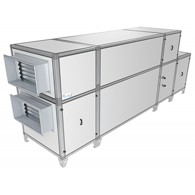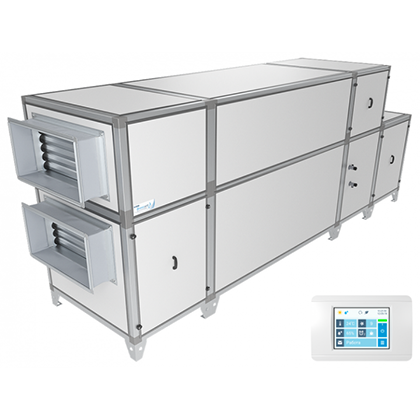 • Приточно-вытяжная установка напольного типа с противоточным пластинчатым рекуператором, системой защиты от замерзания.