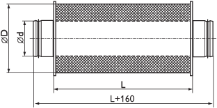 Корпус шумоглушителя Provent RS 125/600 изготовлен из оцинкованной стали, в качестве звукопоглощающего материала используется минеральное волокно толщиной 50 мм.