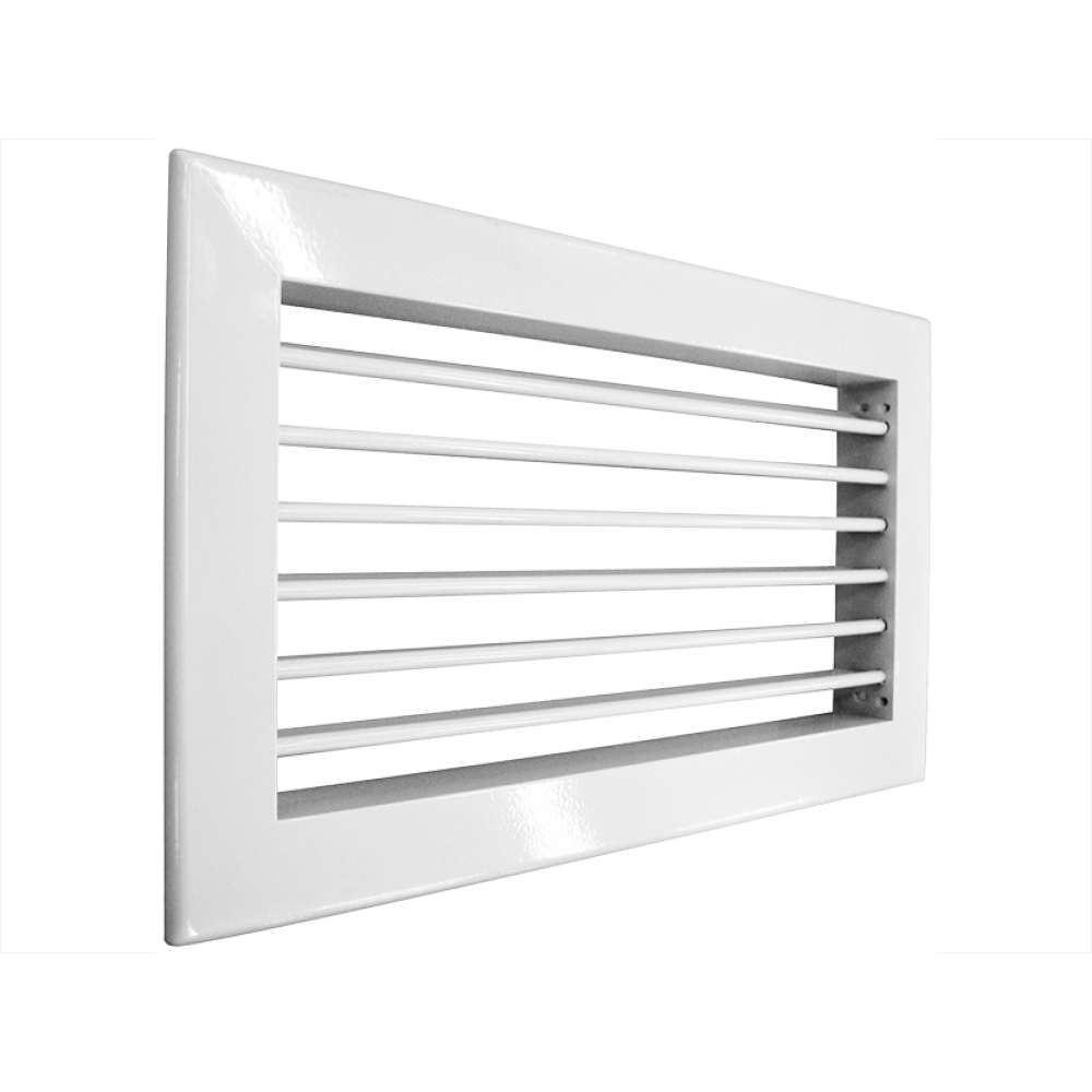 RAG - приточно-вытяжные алюминиевые решетки с индивидуально регулируемыми горизонтальными жалюзями, установленными на пластиковых втулках. Окраска порошковая, цвет белый (RAL 9016)