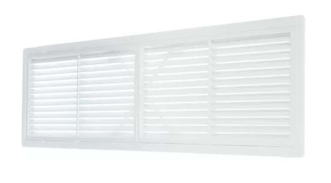 Монтаж с помощью шурупов Для приточно-вытяжной системы вентиляции Для монтажа в дверь ванных комнат, туалетов, кухонь и т. д. Способствует правильной циркуляции воздуха внутри помещений. Может устанавливаться в подоконники для правильного распределения теплого воздуха от батарей центрального отопления. Решетка имеет наклонные жалюзи.