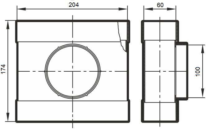 Тип:Круглое сечение (диаметр 100 мм), Тройник